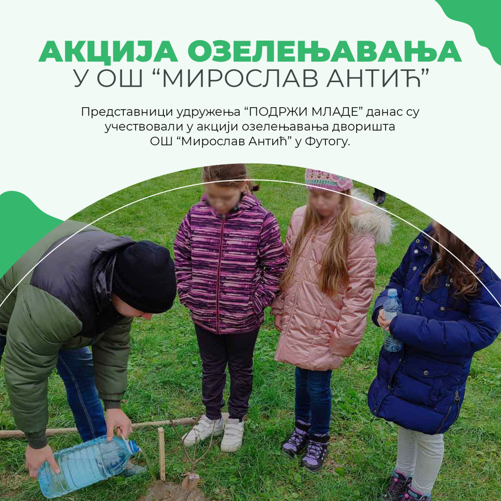 🌳🌿На позив управе ОШ “Мирослав Антић” учествовали смо у акцији озелењавања дворишта школе.